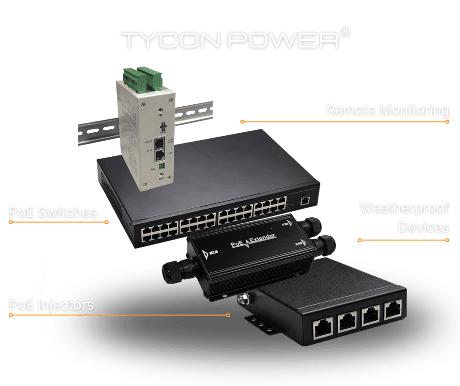 To further support diverse use cases, Tycon Power® provides weatherproof enclosures, PoE-powered relays, and a variety of cable assemblies and power cords compatible with both North American and European standards. Weatherproof enclosures protect PoE devices from harsh outdoor conditions, ensuring consistent performance in applications like remote surveillance and outdoor wireless access points. PoE-powered relays expand the functionality of PoE systems by enabling automated control of connected devices, while high-quality cable assemblies and power cords ensure reliable power transmission. Together, these accessories make Tycon Power® a one-stop shop for building robust, efficient, and scalable PoE networks.