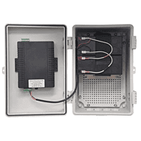 The RemotePro® PL-SM-L series (RPPL) outdoor power systems are designed for applications that require a primary off-grid or backup power source to run various electronics. The sealed and weatherproof 11x7x6” Polycarbonate enclosures hold up to two 12V 10AH batteries. The enclosures are hinged and gasket sealed. They can accept a padlock or tamper seal.