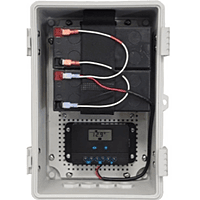 The RemotePro® PL-SM-WTL series (RPPL) outdoor power systems are designed for applications that require a primary off-grid or backup power source to run various electronics. The sealed and weatherproof 11x7x6” Polycarbonate enclosures hold up to two 12V 10AH batteries. The enclosures are hinged and gasket sealed. They can accept a padlock or tamper seal. The enclosures can be mounted to a wall or pole with the included mounting bracket system. The high quality solar panels have a 25year power output guarantee. The solar panels can be mounted to a 51mm to 101mm (2" to 4") diameter pole or alternately to a wall with the included bracket kit. Features include advanced battery charge controllers with LVD load control. Some of the RPPL-SM-WTL systems include a controller with built in POE inserter and DCDC converter to supply 24V or 48V PoE from the 12V or 24V battery system. Other models use a 20A PWM controller with parametric LCD display. Enclosures have multiple ports for CAT5/6 cable, antenna cables/connectors or other cabling. Batteries are a wide temp LFP (LiFePO4) Lithium type which have superb 80% deep discharge and 4000+ cycle life performance. The batteries have an embedded BMS (Battery Management System) to enable 10+ year battery life.