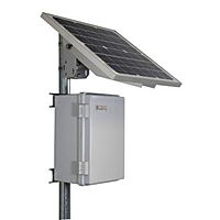 RemotePro 7.5W Cont Remote Pwr Sys, 50W Solar, 24V 20Ah 240Wh LFP Lithium Batt,24V 10A PWM Solar Charge Ctrl; 24VDC and 24V GigE Pasv PoE Out, Pole/Wall Mt Outdoor Polycarbonate Encl and Side of Pole Solar Mount