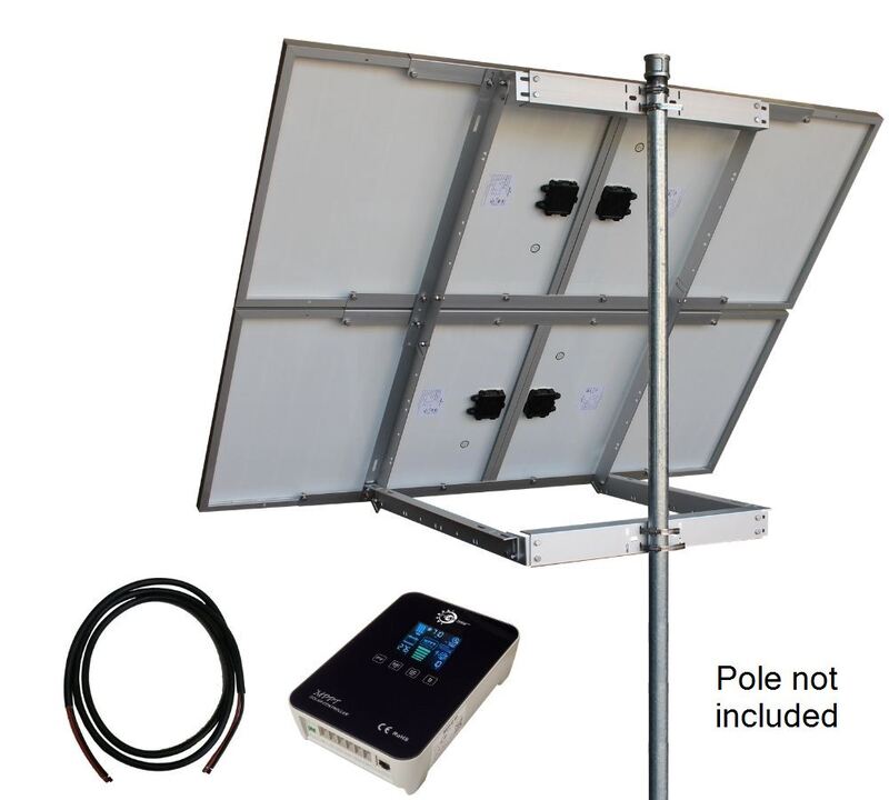 12/24V 400W Solar Kit with 4x 12V 100W Solar Panels, Ctrl, Mount, Cable, 12/24V Autodetect 40A MPPT Solar Charge Ctrl with Status Display and 20A Load Ctrl, 2-4" Pole Dia Side of Pole/Wall Mt with 15-65deg Tilt Adj, Incl 6m 12AWG Outdoor Rated Cable